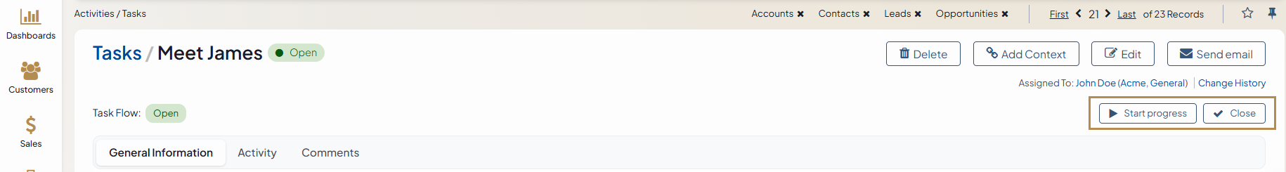 The Task Flow workflow helps you proceed through phases of work on the task.
