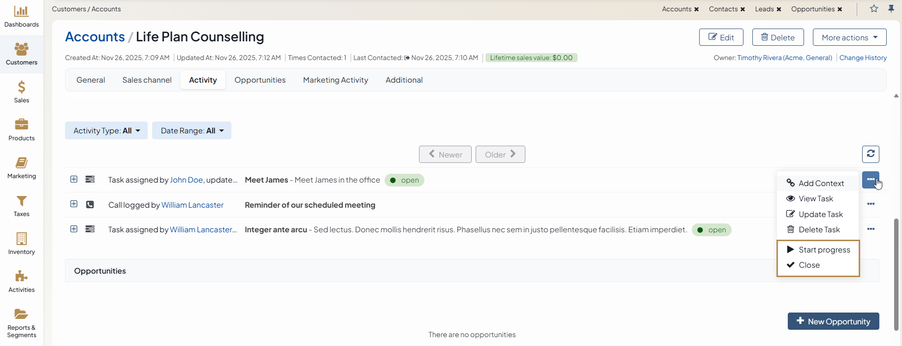 Click Reopen to actualize the task again. |