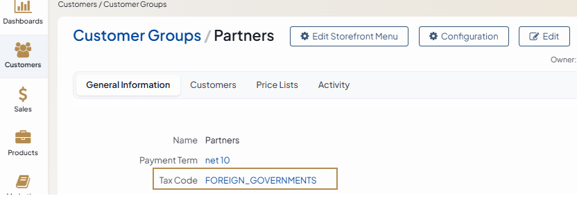 A customer tax code is a label for a group of customers that indicates the tax obligations and exemptions that a customer has. These tax obligations are considered when a customer submits an order.