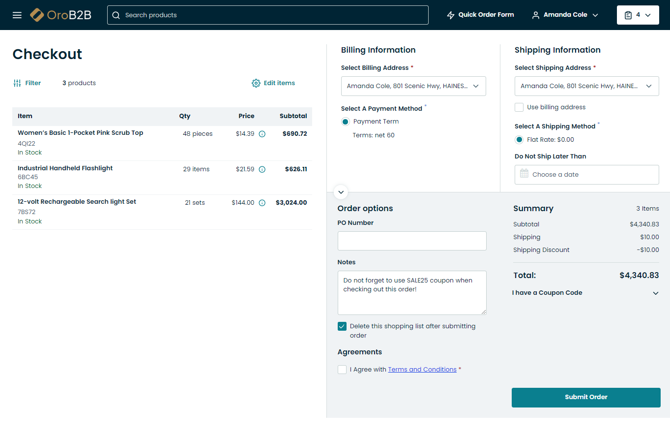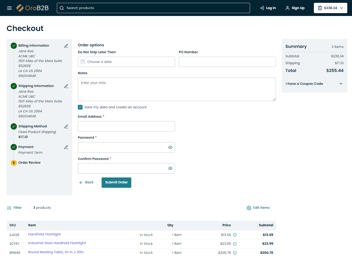 Let’s get closer to the specifics of the checkout feature offered by Oro out-of-the-box.