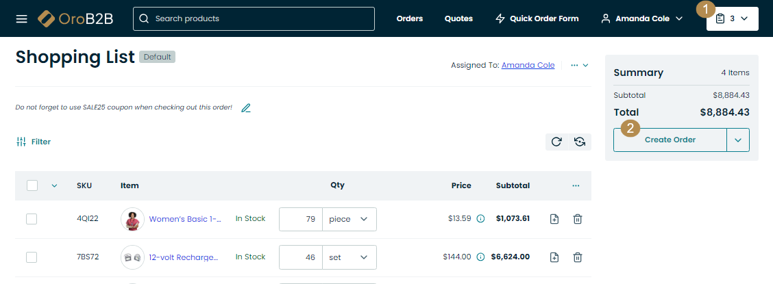 Shopping List — allows to create an order directly from the shopping list page.
