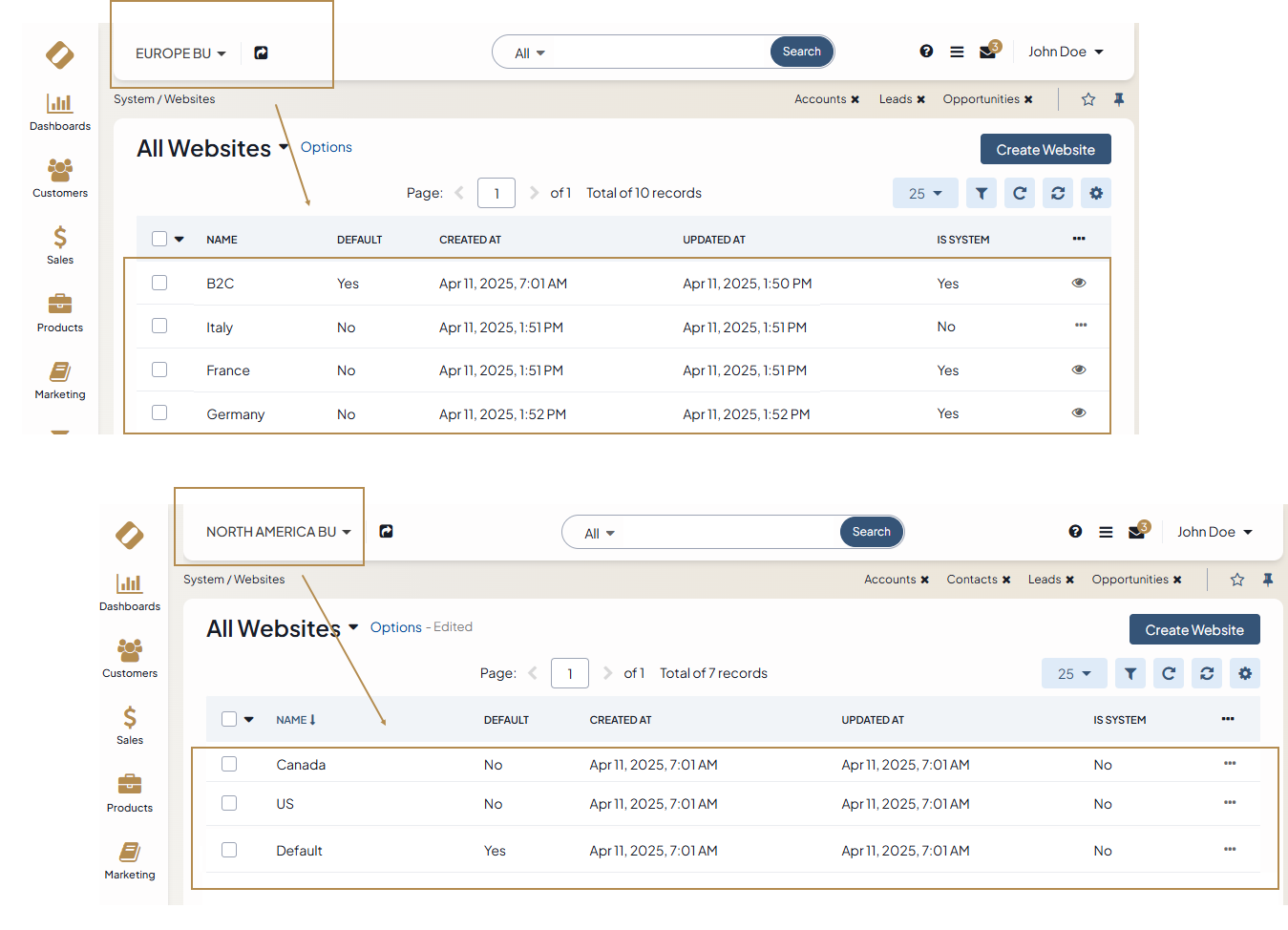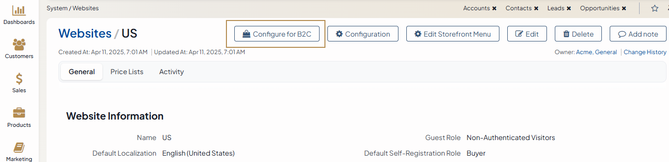 Let’s dive deeper into the capabilities that the feature provides to find out which configuration options OroCommerce has prepared for B2B and B2C businesses who run multiple websites.