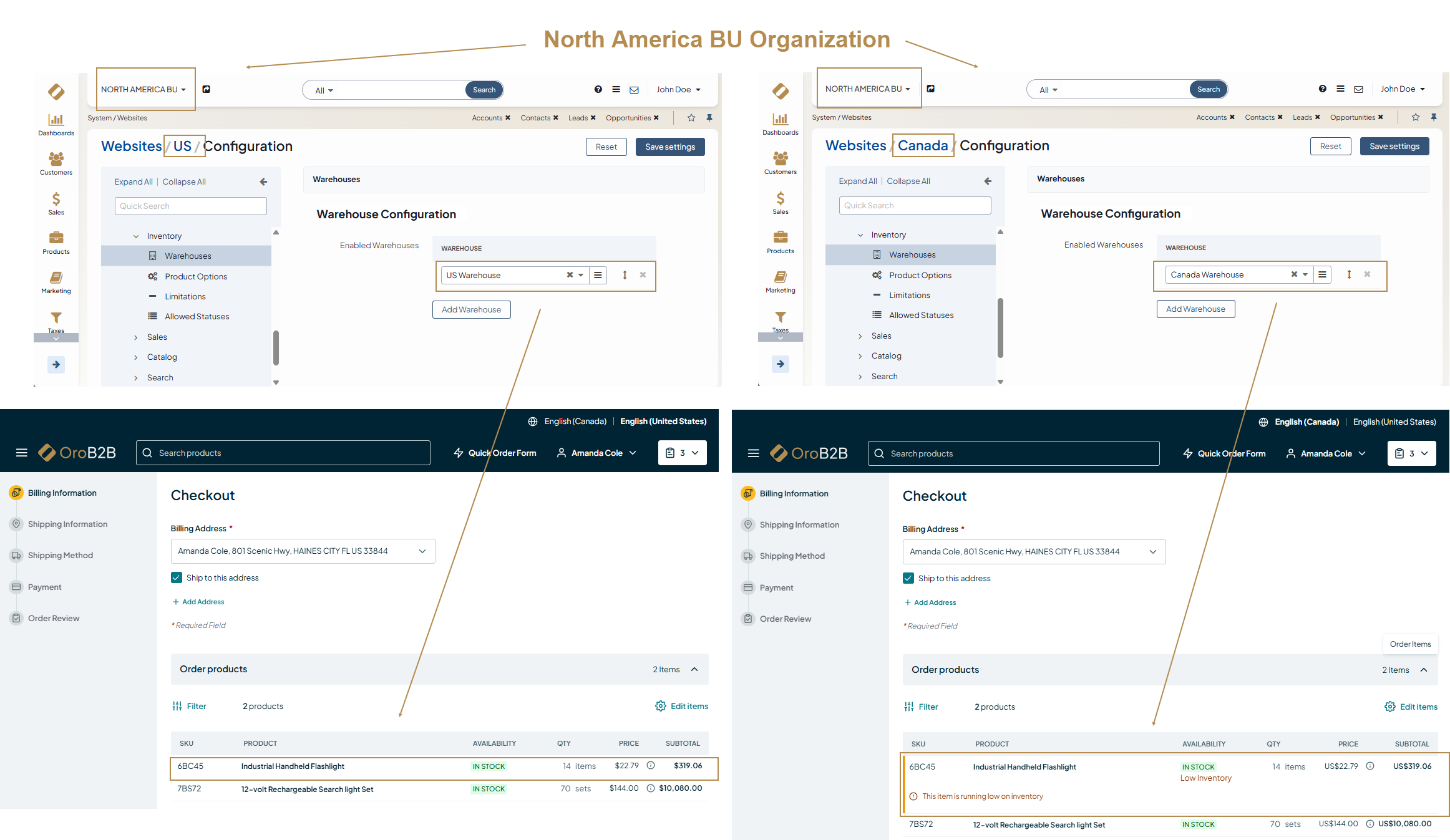 While OroCommerce allows you to create a standard look and feel of your online web store and share it across all your business units, it also enables regional teams to tailor content and run marketing campaigns on the websites they are responsible for.