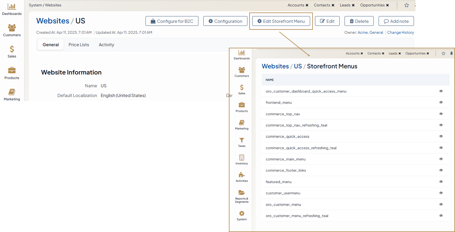 However, there are some settings that can be adjusted on the customer and customer group levels as well. This includes the configuration of price lists and storefront menus.