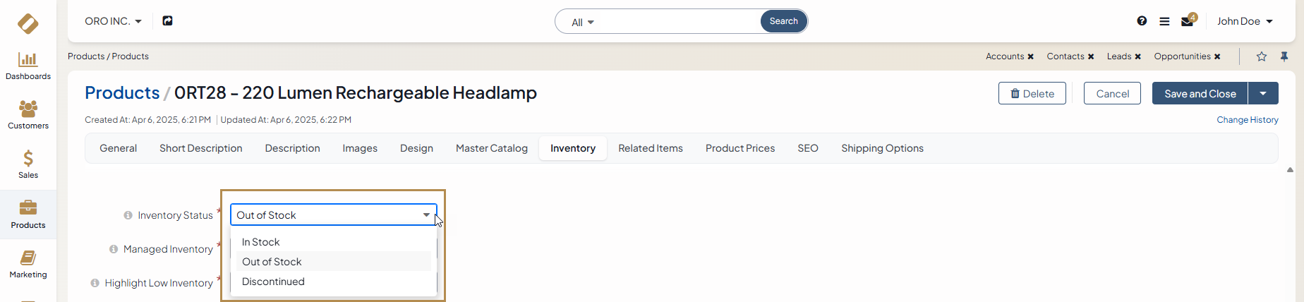 Inventory statuses and inventory levels in OroCommerce are interconnected.