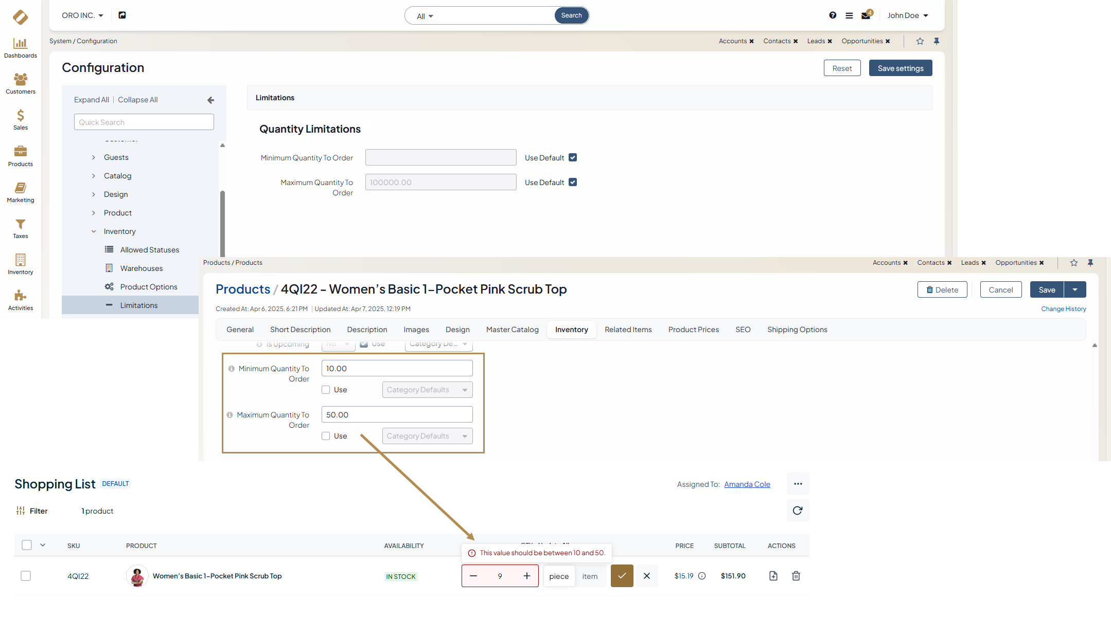 OroCommerce comes with a number of essential features that enhance inventory management and help control quantities of stock in the catalog to avoid running out. By customizing the settings, you can decide whether to allow buyers to purchase the products that are not yet available in stock or set the threshold values, which, if reached, will notify buyers of the insufficient product quantity in the storefront. You can also set the minimum and maximum amounts that can be purchased in a single order. You can find more information on inventory options further below.