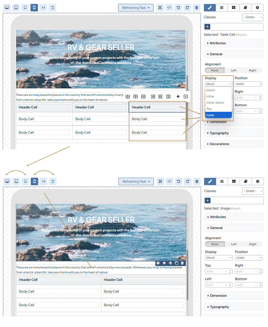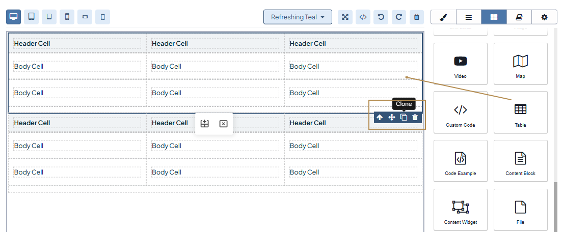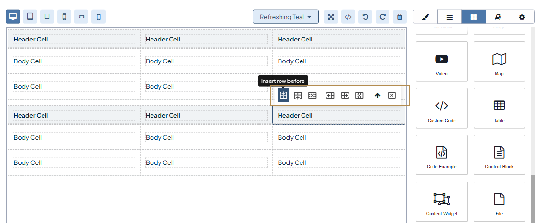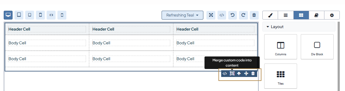 by merging () the code into your web page content to adjust it via UI. Be aware that merging the table is an irreversible action that doesn’t allow you to undo the merging. Refer to the Add a table section for more details on how to manage tables via UI.