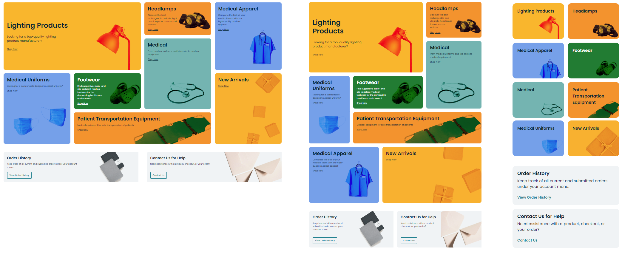 With the Featured Categories template, you can configure the properly styled tiled content, which is easily adapted to various screen breakpoints.