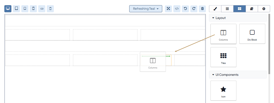 Drag the Columns block under the Layouts section to the required place on your canvas.