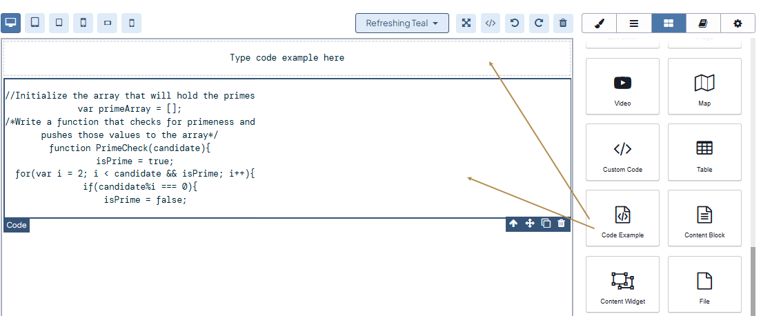 Drag the Code Example to your canvas.