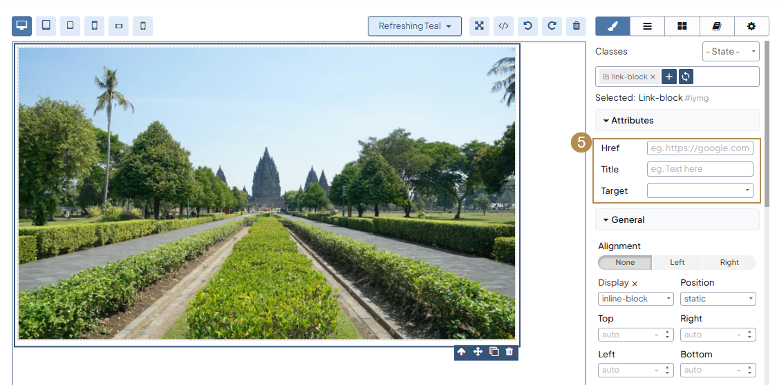 Click the link block again to display the Style Manager menu settings. In the Settings section, input the link for the image to direct people to the necessary website, once they click the image in the storefront.