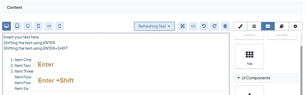 From the popup, select the required column number (1,2,3, or more). Columns are fully responsive and adapted to content, formatting, and styles that you apply afterwards.
