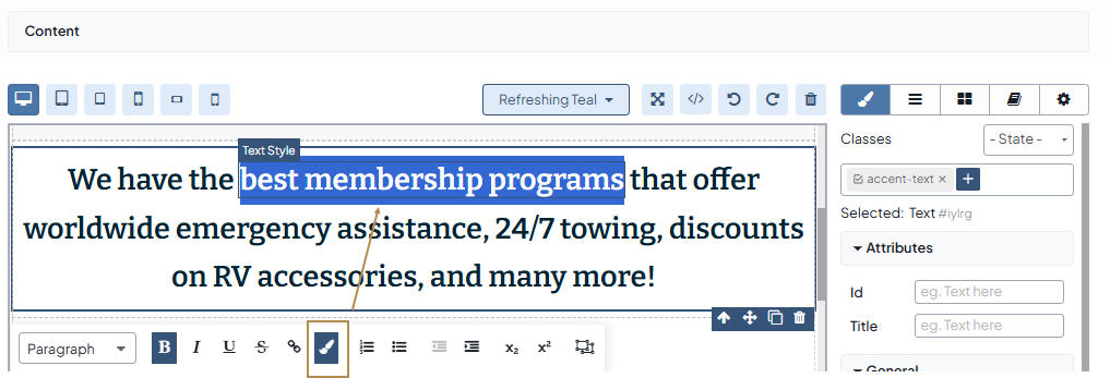 Select the fragment and click to wrap the text into the Text Style block. Use the