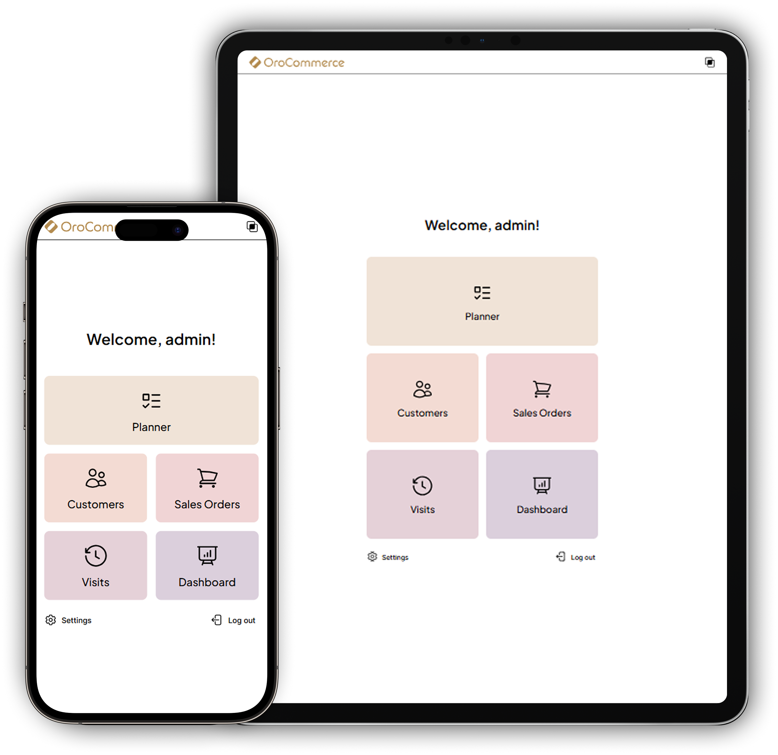 OroCommerce Field Sales App is a progressive web application (PWA) developed to support sales representatives who operate outside traditional office environments. The app allows users to manage customer interactions, plan and log visits, capture orders, monitor sales activity and key metrics directly from a mobile device. The Field Sales App functions reliably in offline or low-connectivity environments, allowing sales reps to enter order data and update customer records without an internet connection. All data is automatically synchronized once connectivity is restored.