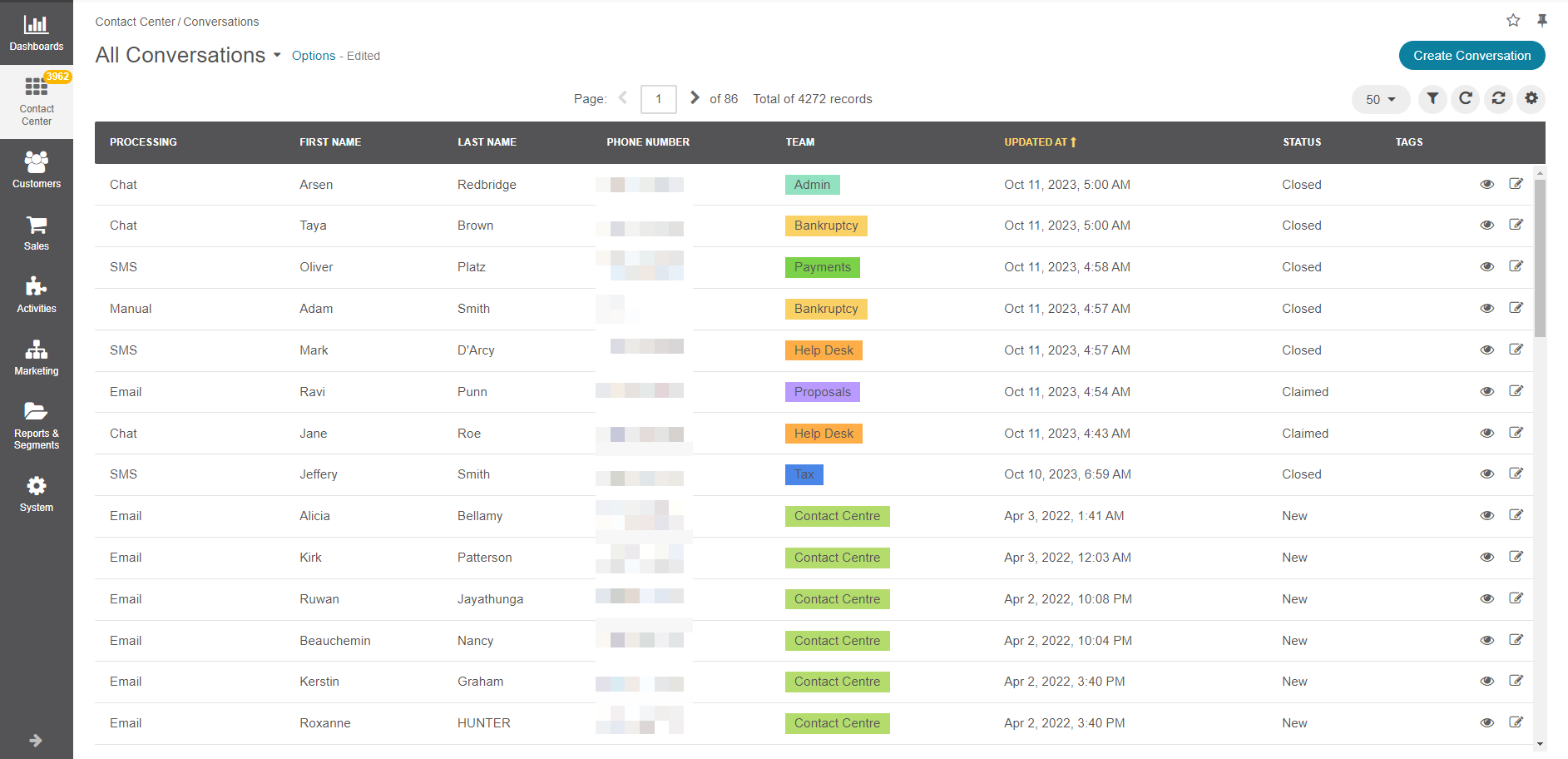 Twilio is a cloud-based communication platform that helps businesses to integrate different communication channels into their systems and applications. This integration allows for better customer engagement and interaction. OroCommerce leverages Twilio Flex for live chat conversations and Twilio Programmable Messaging for SMS/MMS to enable businesses to reach their customers through multiple communication channels. In addition, OroCommerce uses its existing email synchronization functionality to synchronize emails, online chats, and SMS/MMS messages into one aggregated Contact Center > Conversations grid in the OroCommerce back-office. This centralization of all communication channels enables businesses to manage all customer interactions in one place.