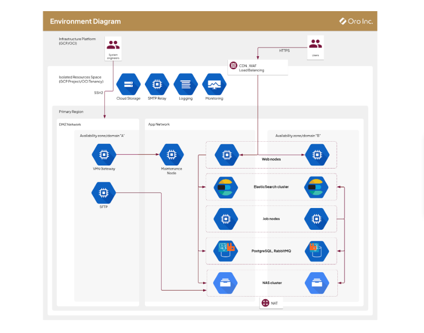 Oro Inc. manages and scales all infrastructure resources, including networks, firewalls, storage, and compute nodes, to meet customer needs. |