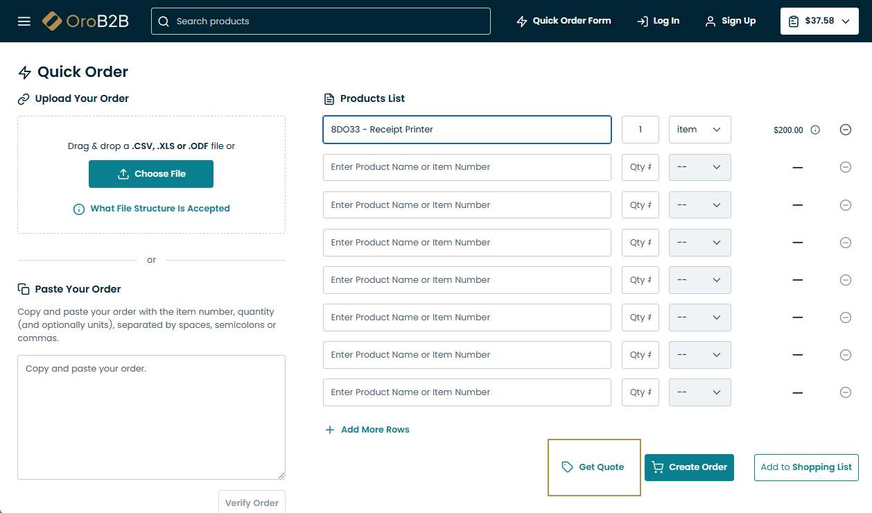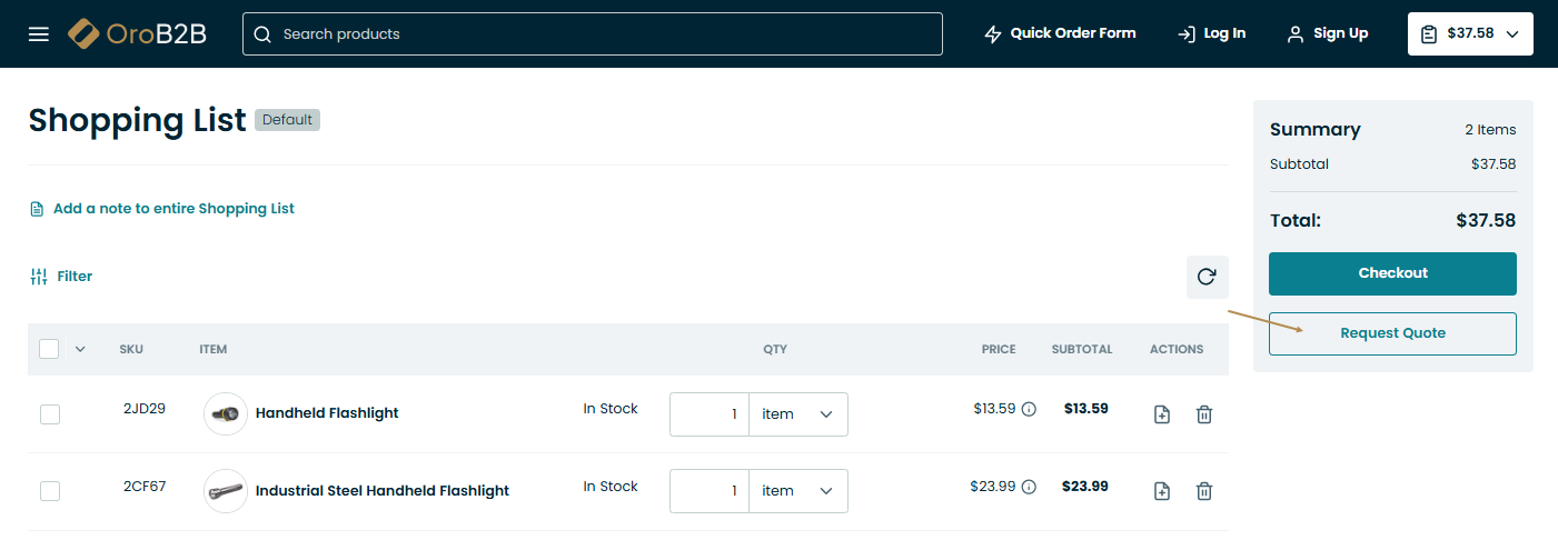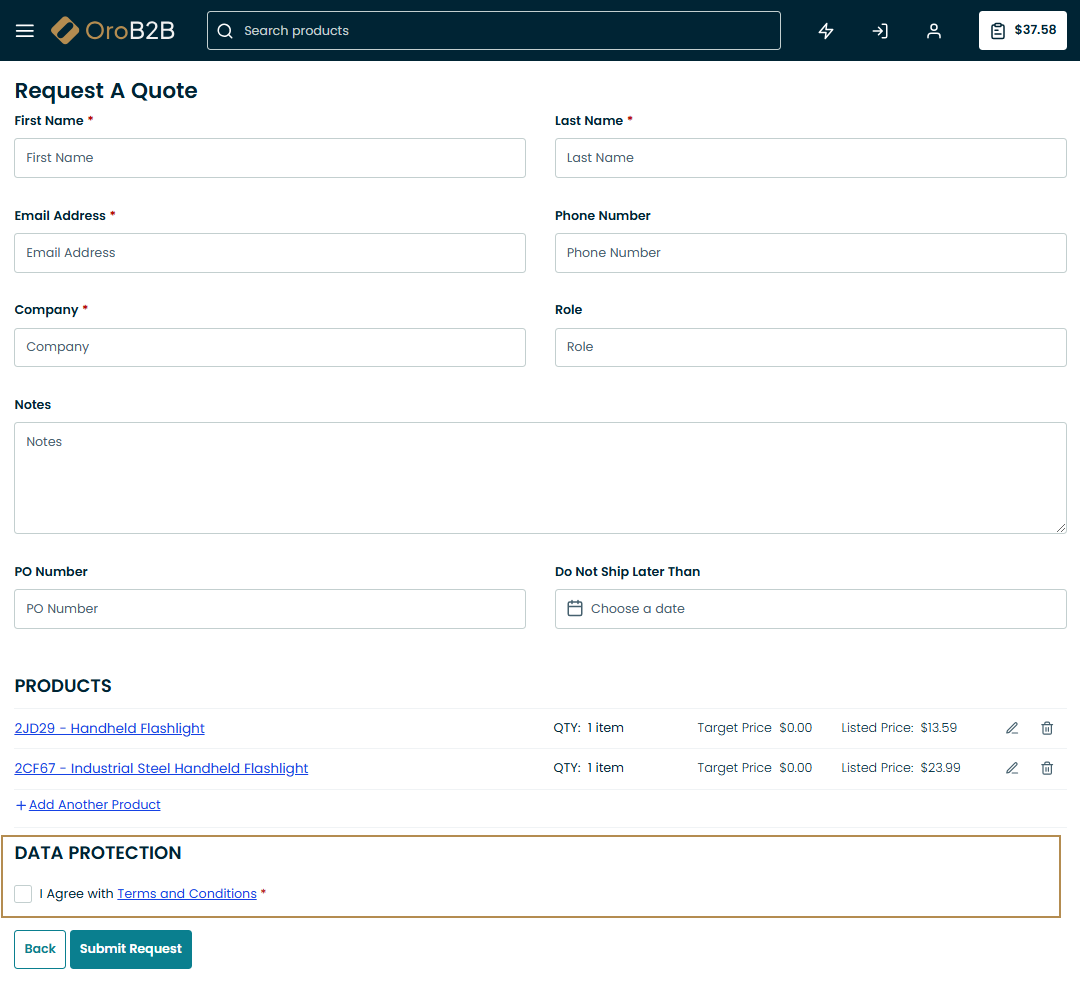 In the Oro application, guest customers can create a request for a quote for the items they are interested in purchasing without the need to register, if this option was configured in the back-office.