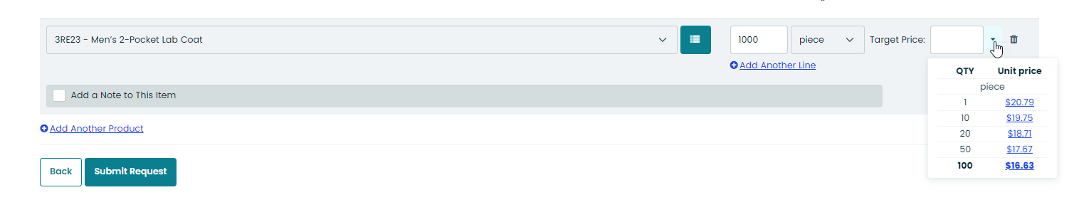 Click Add Another Line to provide additional quantities and price.