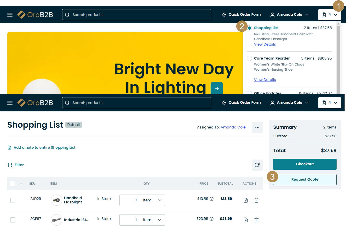Click Request Quote in the Summary section of the shopping list.