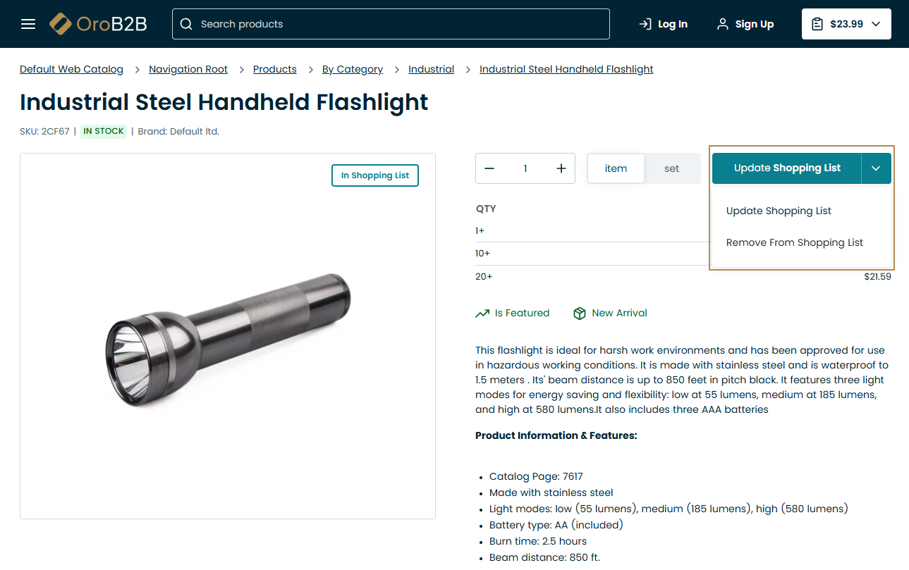 In Oro application, unregistered customers can create and manage a shopping list in the storefront without the need to register. By default, they can have one shopping list per website and browsing session with the possibility of storing such list for up to 30 days in a single browser.