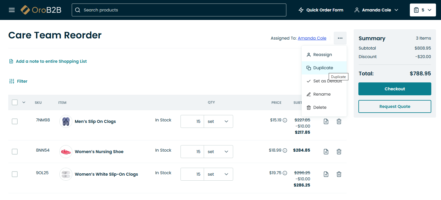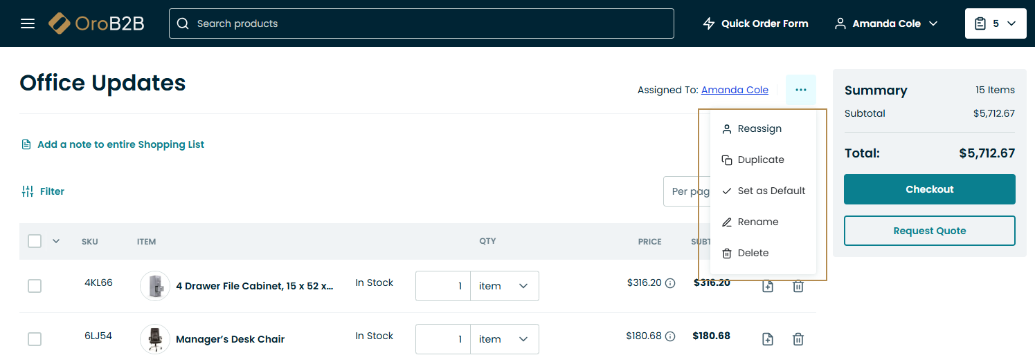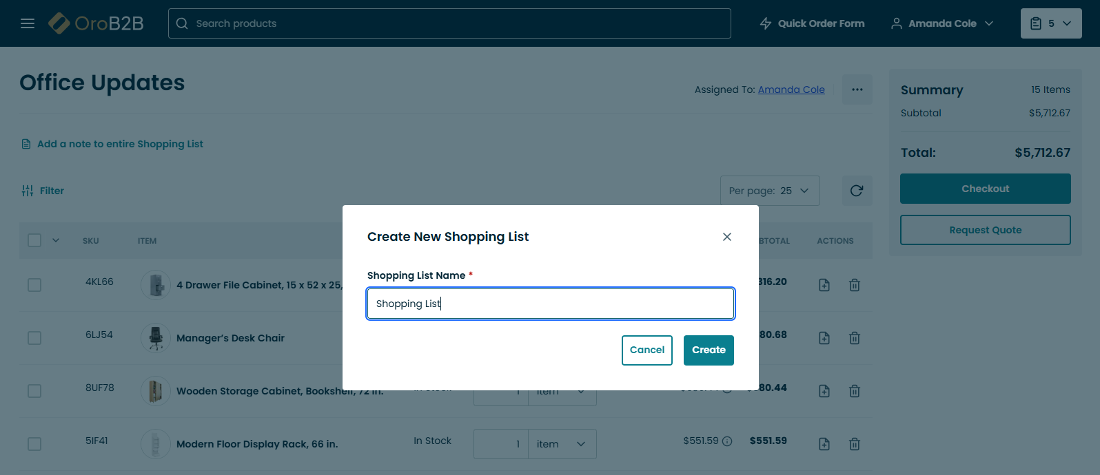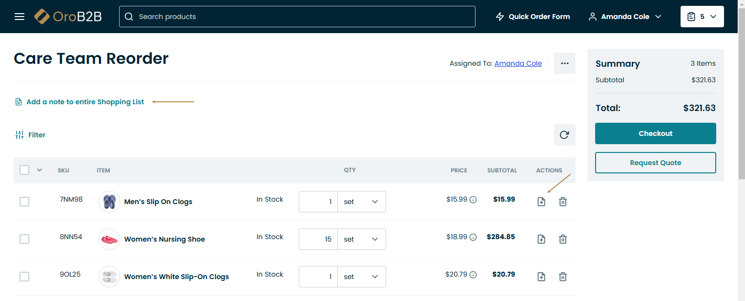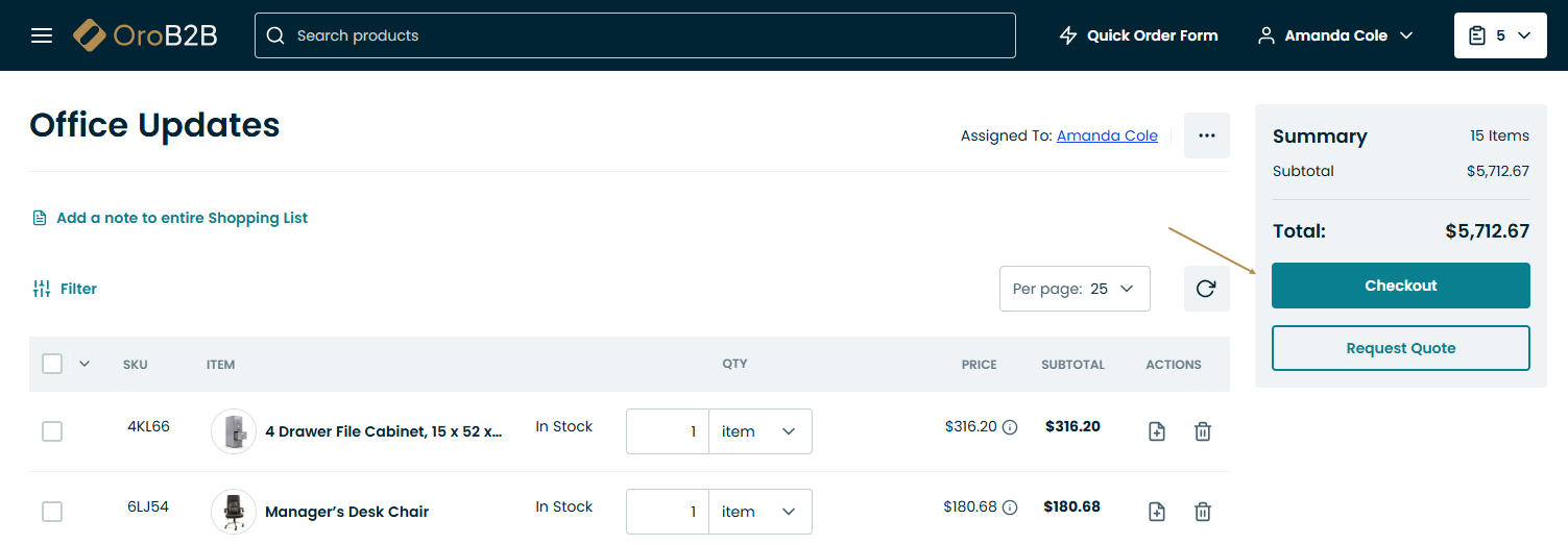 Click Request Quote in the Summary section of the shopping list page.