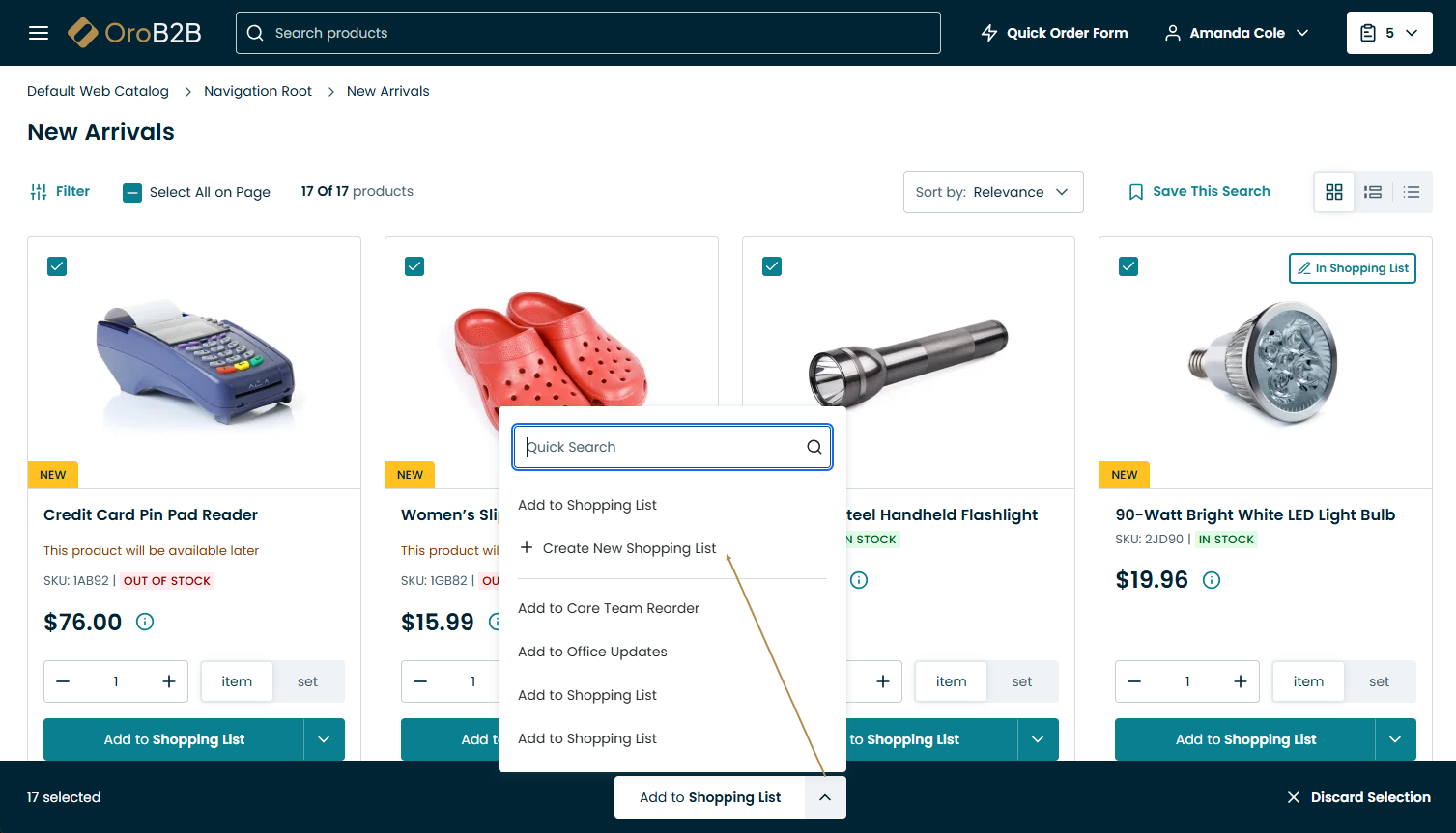 Create a new shopping list with the selected product, click Create New Shopping List.