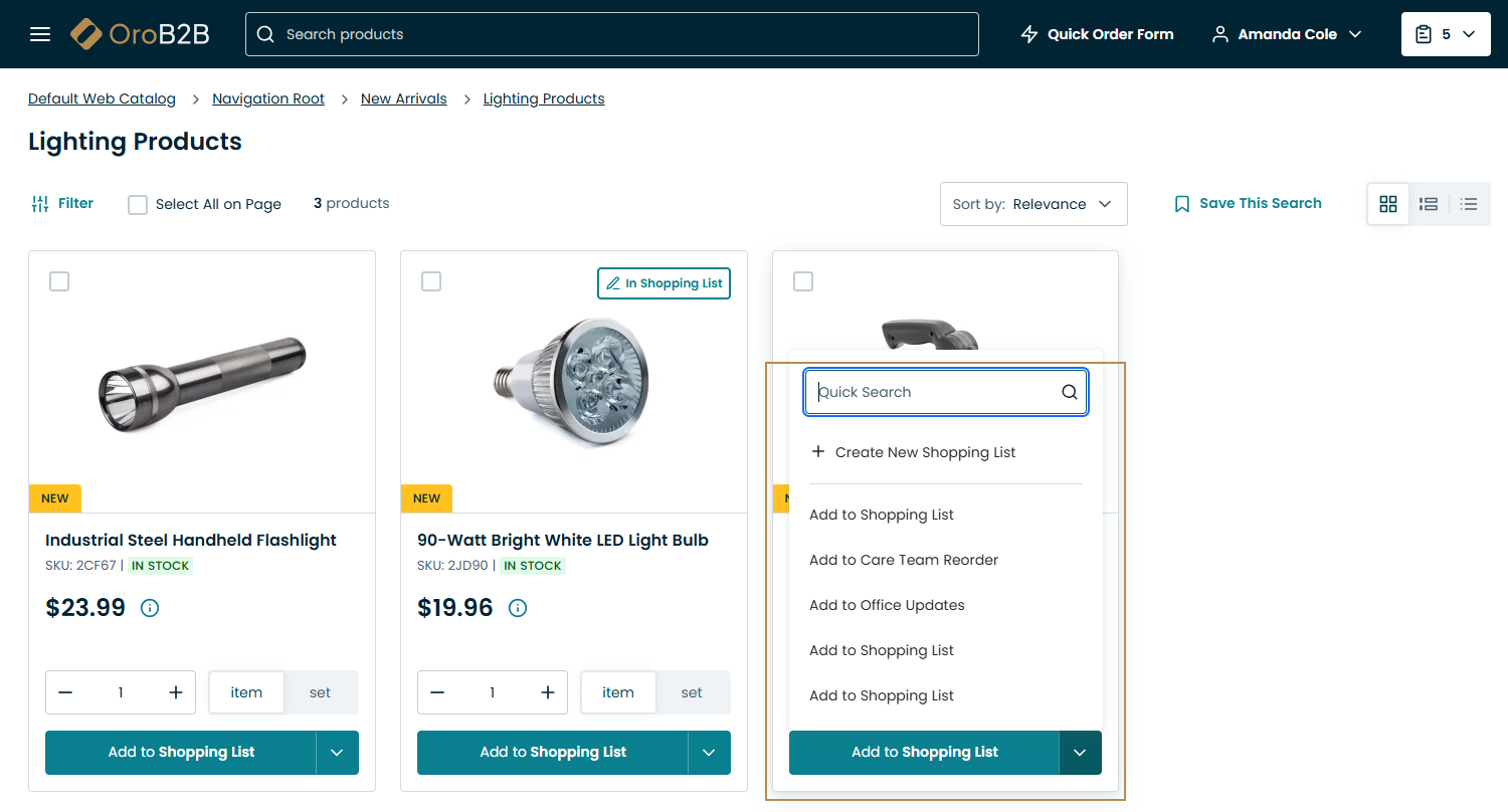 Manage Shopping Lists for Registered Users in the Storefront