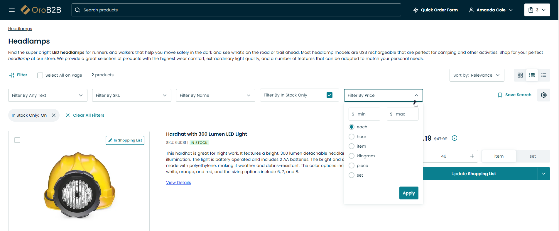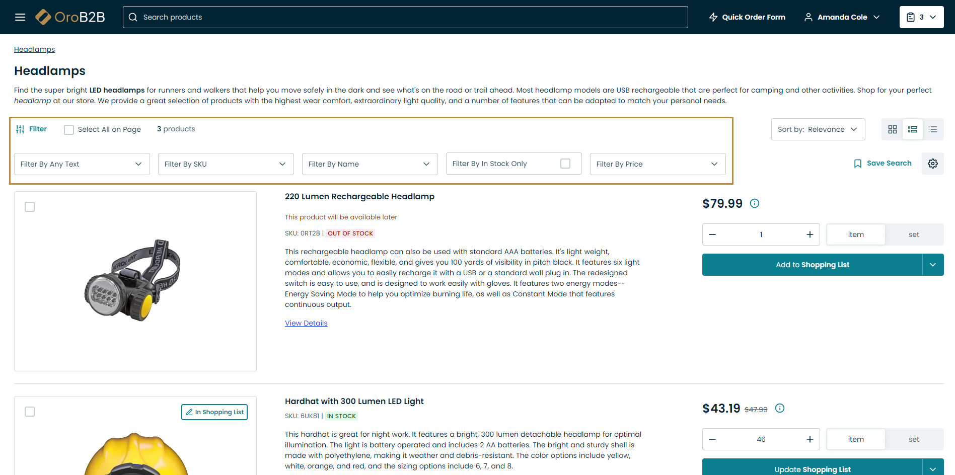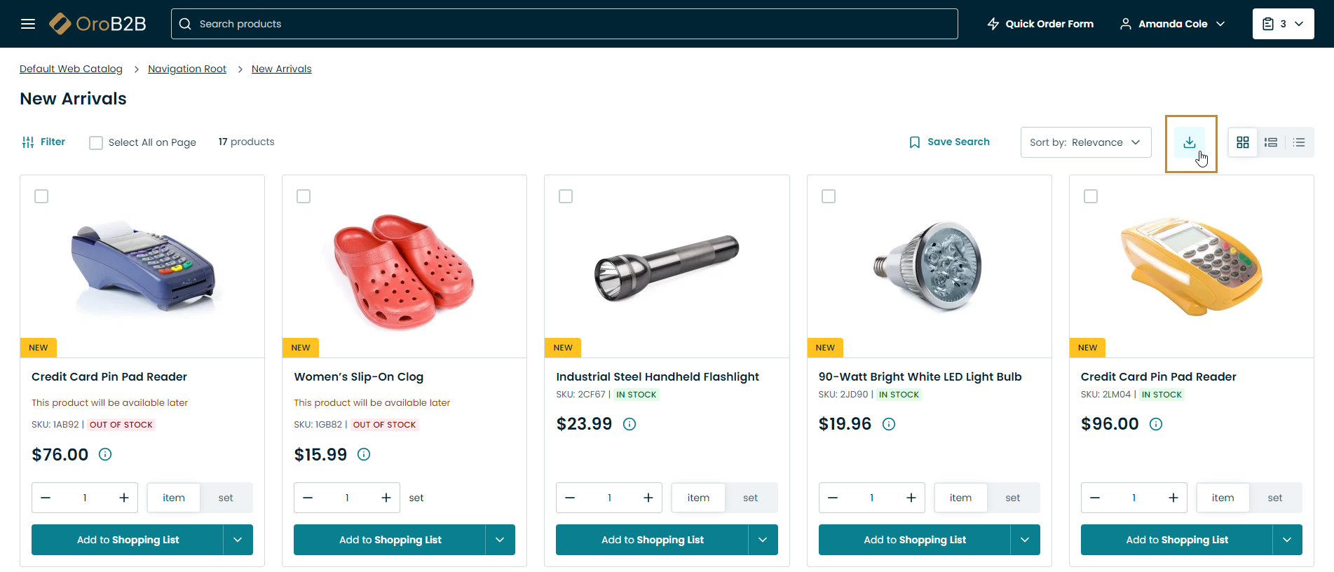 Use the search bar to look for a product name, SKU, keyword, etc.