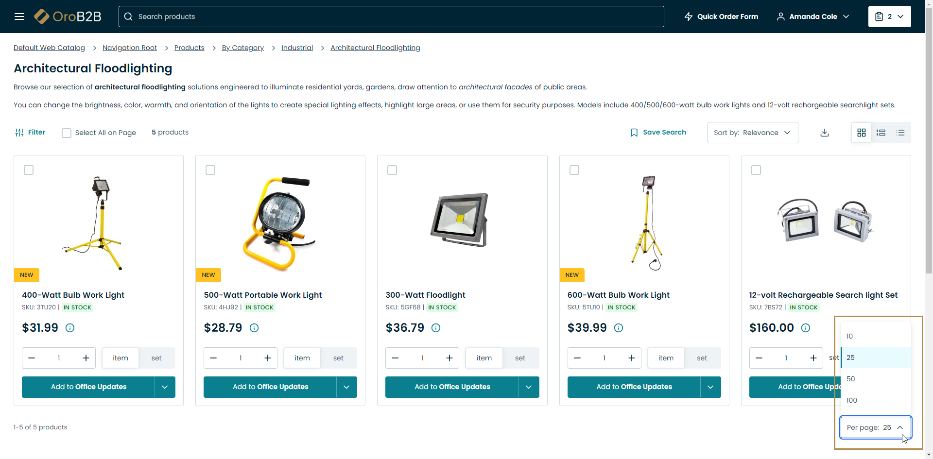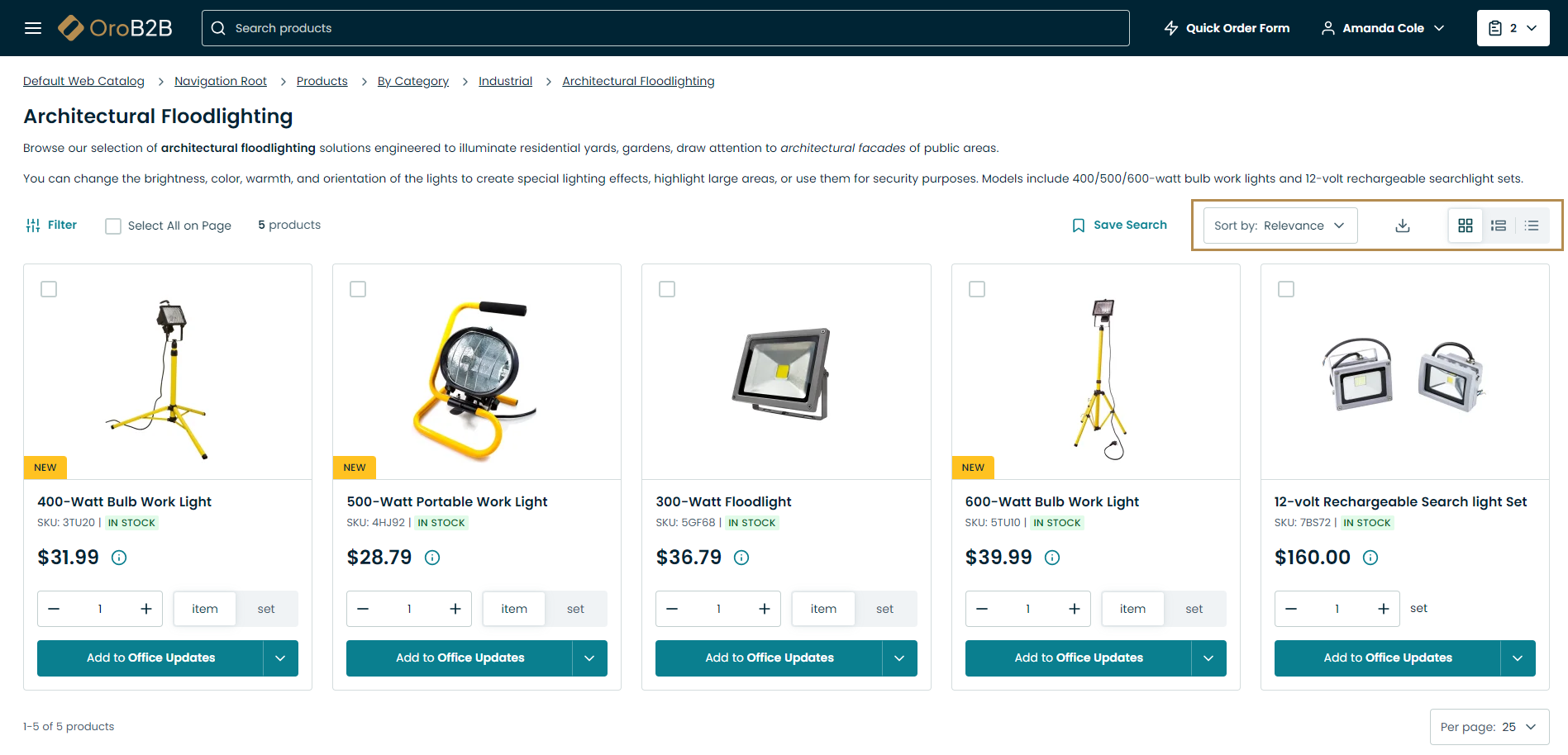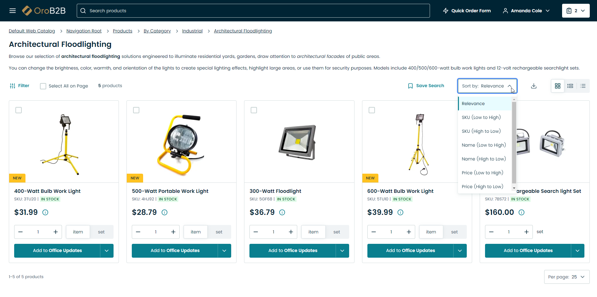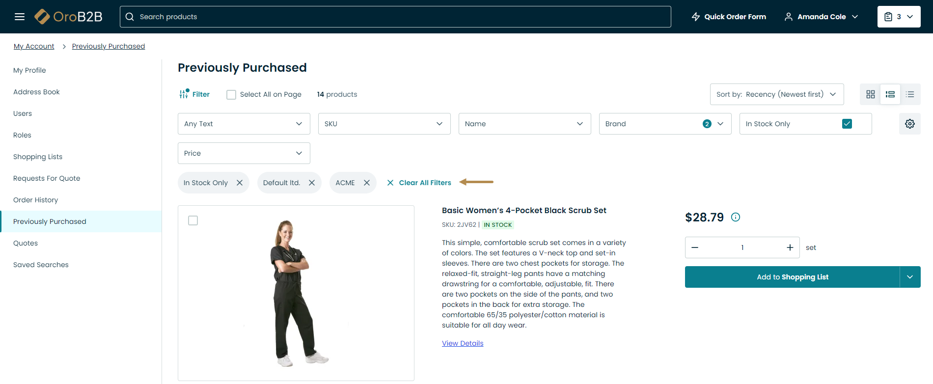 Use the search bar to look for a product name, SKU, keyword, etc.