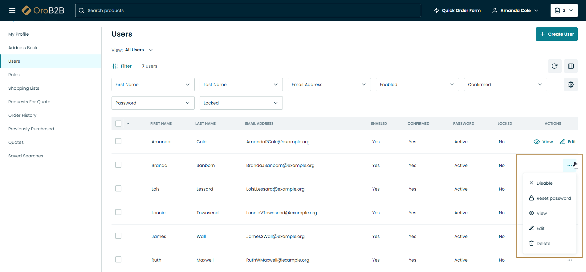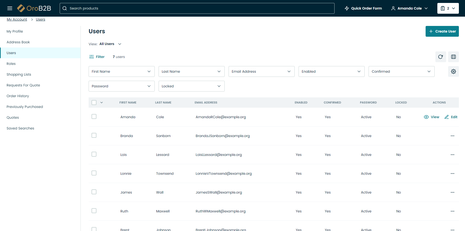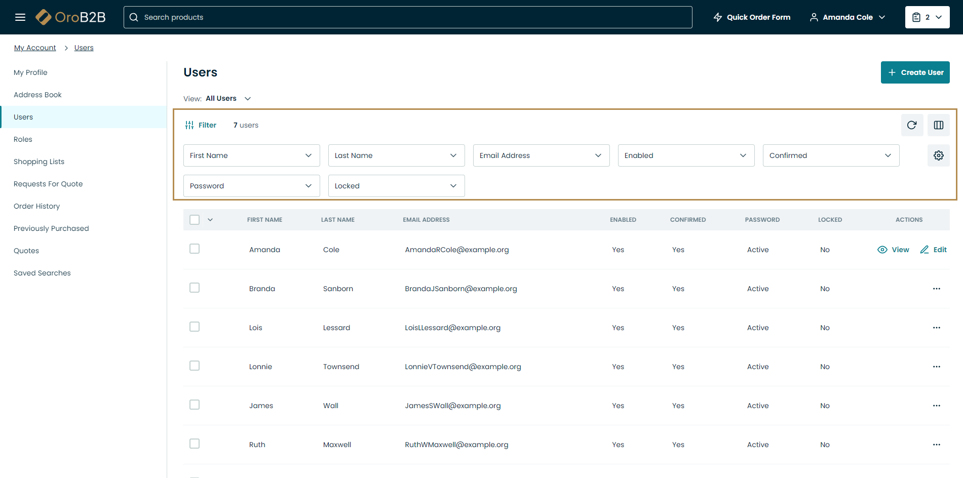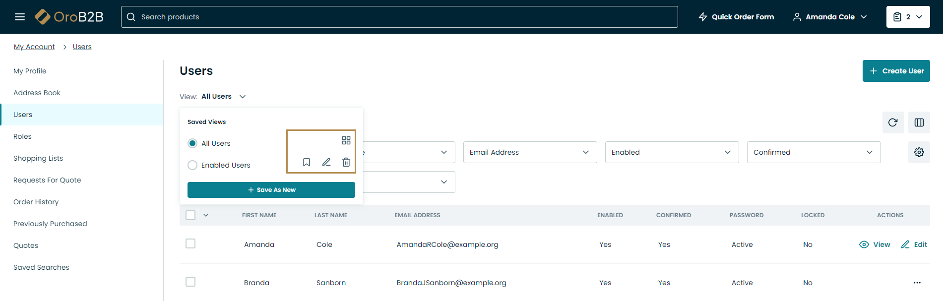 Views in the form of tables can be considered the most commonly used UI elements in Oro applications. They are interactive, as they not only display data about specific store records but contain links to these records’ pages. Views are also configurable – so you can adjust the appearance and contents of the tables to your taste and needs.