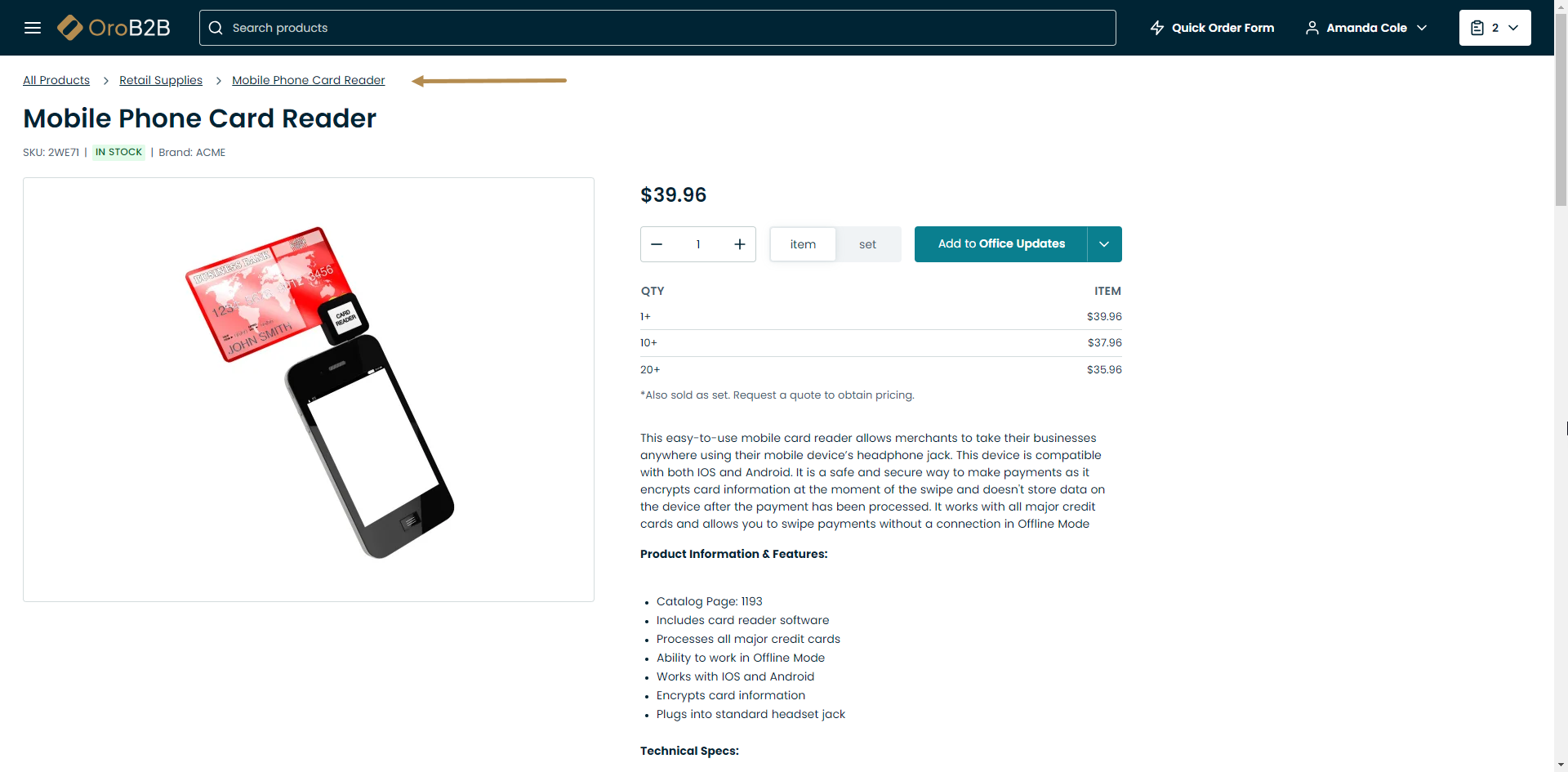 This means that product price per 1 item will change depending on how many items a buyer wants to purchase. The more they purchase, the cheaper the price per item is going to be in this scenario. The following image illustrates how price tiers are going to be displayed for a user in the storefront.