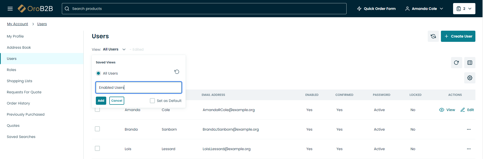 Add: Click Add to add a new saved view table.