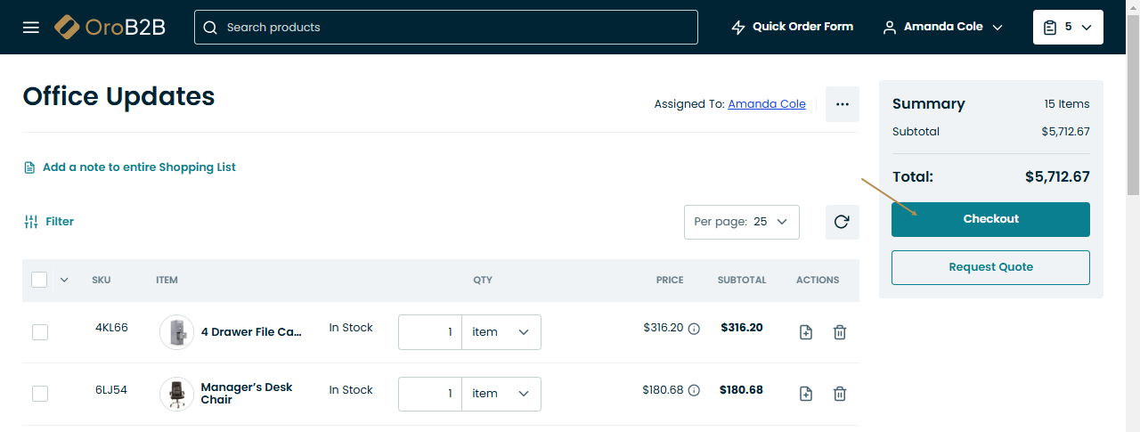 Keep in mind that when adding a product kit item to the quick order form, you will not be able to view the price for the product kit or create the order, as product kits require configuration that the quick order form does not support. You can still proceed to the checkout via a shopping list or create a quote.