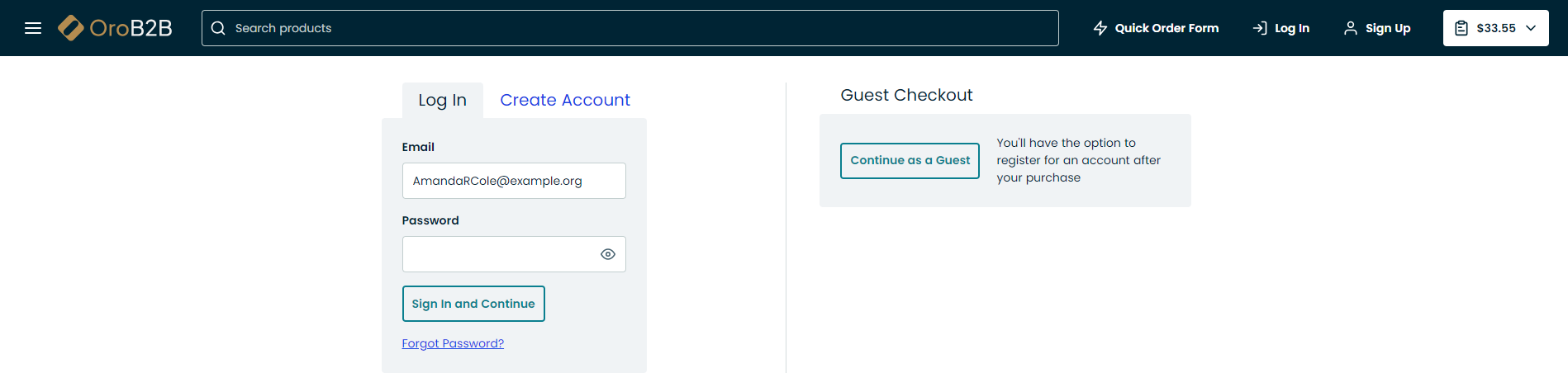Non-authenticated users can request a quote for the items they are interested in without registering in the storefront, and then receive a quote from the sales representative in the form of a direct link to the provided email address.