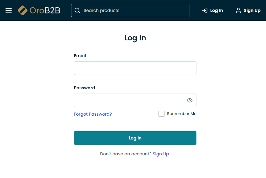 Create an account — navigates you through the steps of creating an account in your OroCommerce web store.