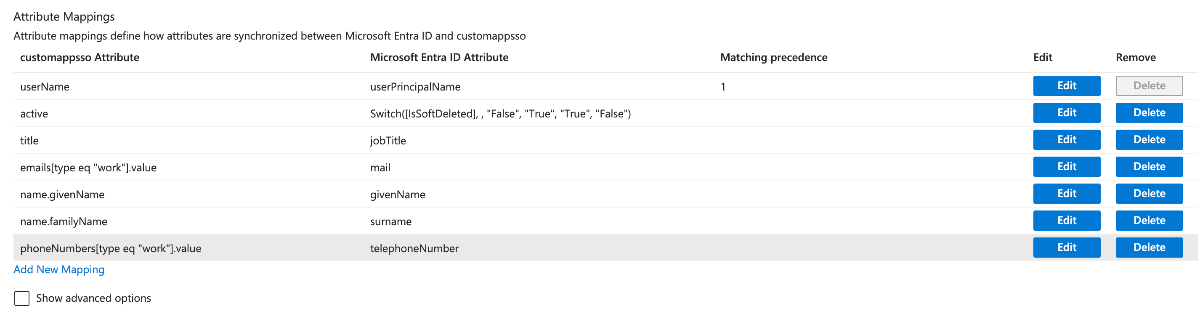 Configure Provision Microsoft Entra ID Users with the following mapping settings:
