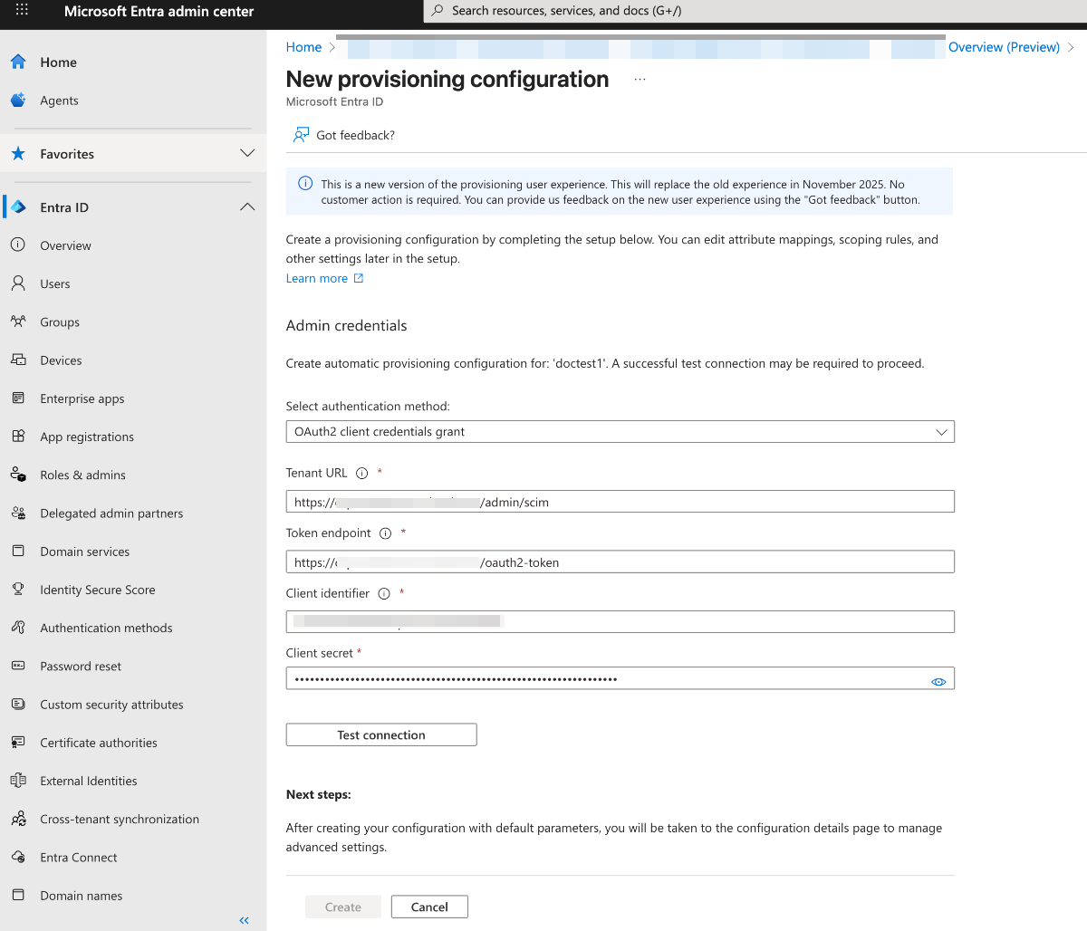 Click Test Connection to verify that Microsoft Entra ID can successfully connect to the SCIM endpoint. If the connection fails, an error message with details will appear.