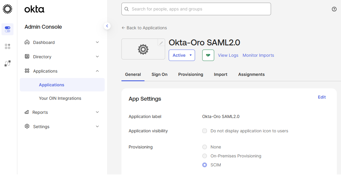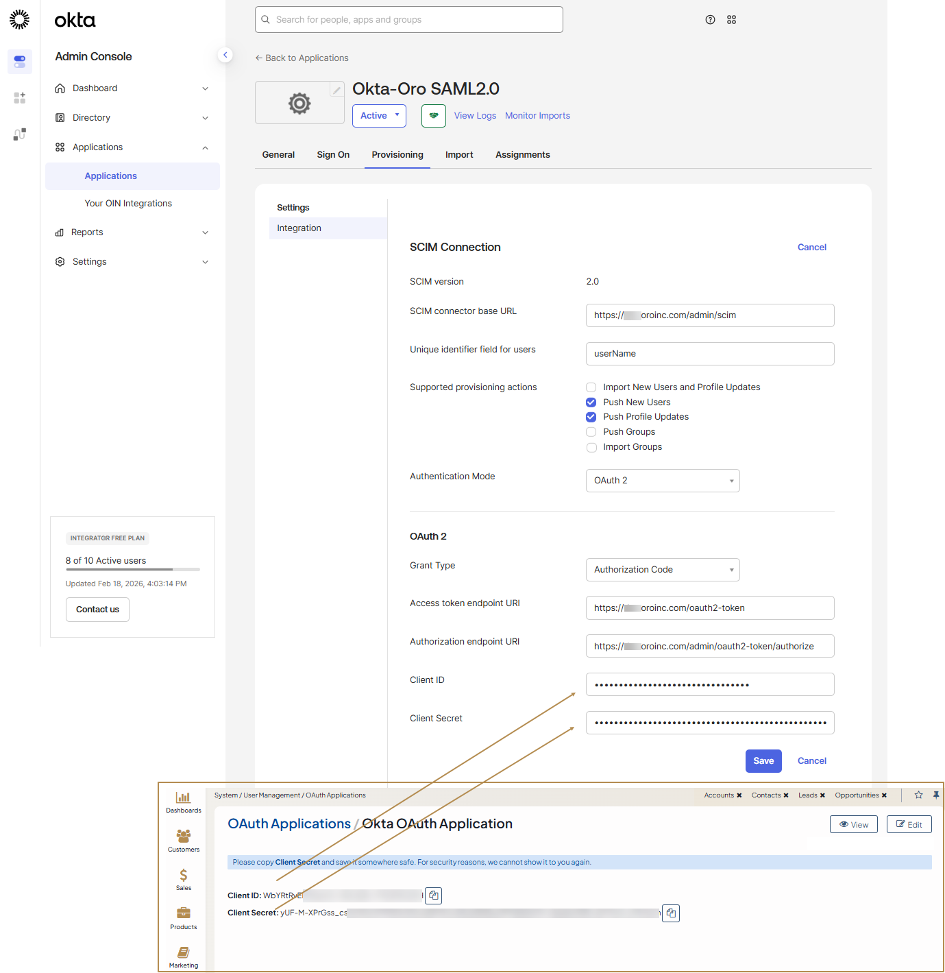 To configure the user provisioning via Okta provisioning service and allow importing of users from Okta to Oro, make sure you have: