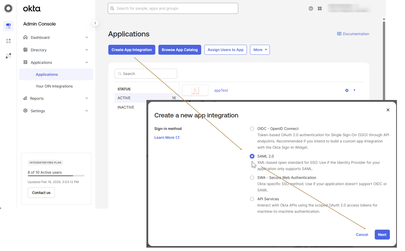 {appName}value is generated when you create your app integration in Okta. You can obtain it from the Admin Console URL after navigating to Applications > Applications > your app instance.The Admin Console URL has the following format: