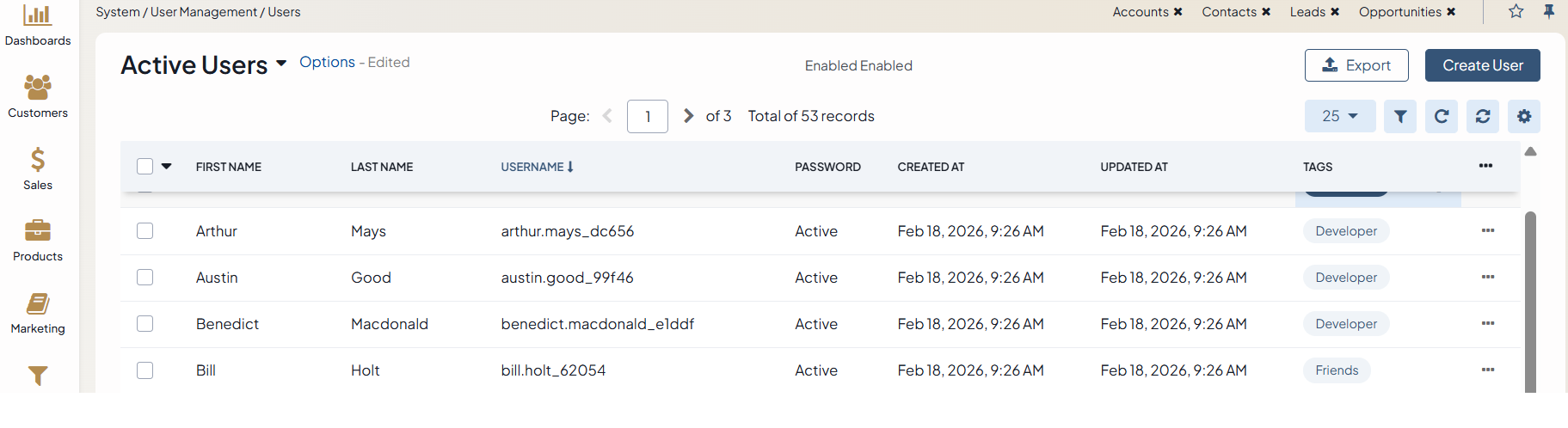 Once the provision is established, the users that are/will be registered within this Okta app instance will be synced to Oro. Their details will appear under System > User Management > Users in the OroCommerce back-office.